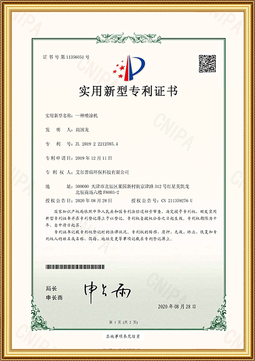 實用新型專利證書(一種光觸媒噴涂裝置)